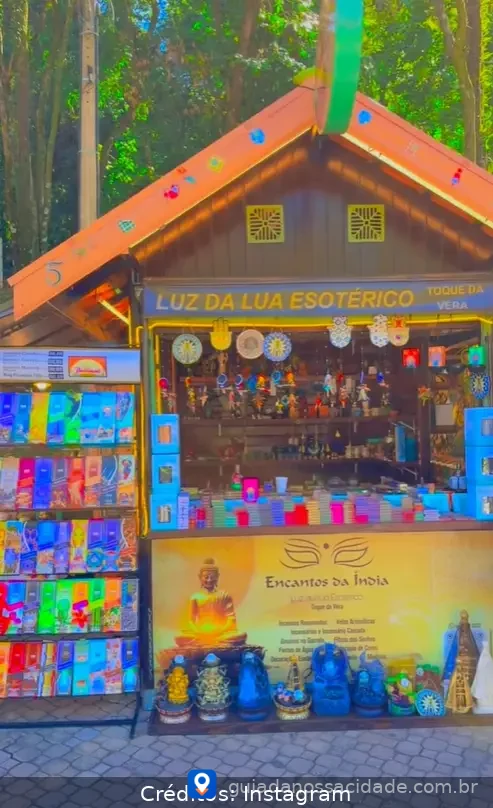 Instalado em um charmoso chalé de madeira dentro do Bosque Estadual, o Encantos da Índia é uma loja e um atrativo turístico em si. O espaço oferece uma imersão na cultura indiana, com uma curadoria de vestidos, roupas, acessórios e artigos de decoração. Sua localização privilegiada em meio à natureza o torna uma parada obrigatória para quem visita o bosque. É o lugar perfeito para encontrar peças únicas e desfrutar de um ambiente de paz e boas energias.