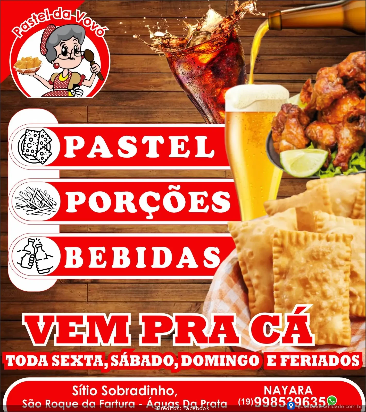 Pastel da Vovó é um destino imperdível em Águas da Prata para os amantes de comida brasileira. Como um restaurante acolhedor, oferece uma experiência única com seus pastéis artesanais, feitos com ingredientes frescos e de alta qualidade. O ambiente familiar e a localização charmosa em São Roque da Fartura tornam cada visita especial. Por que visitar? Além dos deliciosos pastéis, a hospitalidade da equipe faz você se sentir em casa. Venha nos visitar e descubra os sabores que só o Pastel da Vovó pode oferecer!