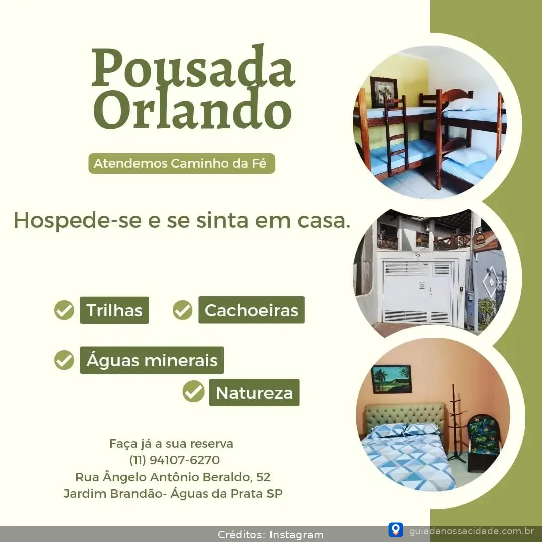 Localizada em um ponto privilegiado de águas da prata, a pousada orlando oferece uma experiência de hospedagem acolhedora e tranquila. Com um ambiente familiar e aconchegante, a pousada é ideal para quem busca descanso e contato com a natureza. Os hóspedes podem desfrutar de acomodações confortáveis e um atendimento personalizado que faz com que se sintam em casa. A proximidade com as belezas naturais da região, como cachoeiras e trilhas, torna a estadia ainda mais especial para os amantes do ecoturismo. Seja para uma escapada de fim de semana ou uma estadia prolongada, a pousada orlando é a escolha perfeita para relaxar e renovar as energias.