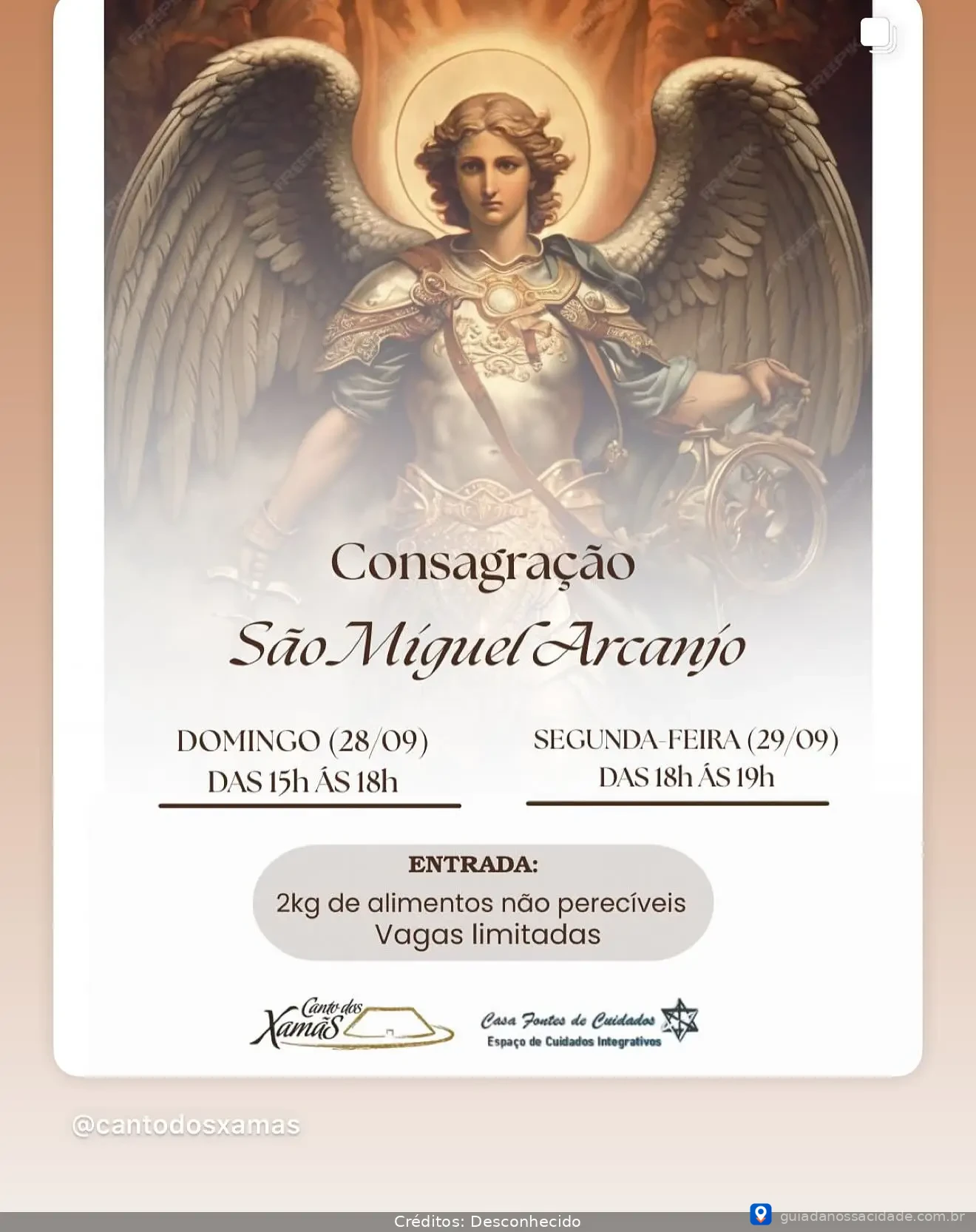 Nos dias 28 e 29 de setembro, o Canto dos Xamãs, em parceria com a Casa Fontes, realizará dois dias especiais em honra a São Miguel Arcanjo.
