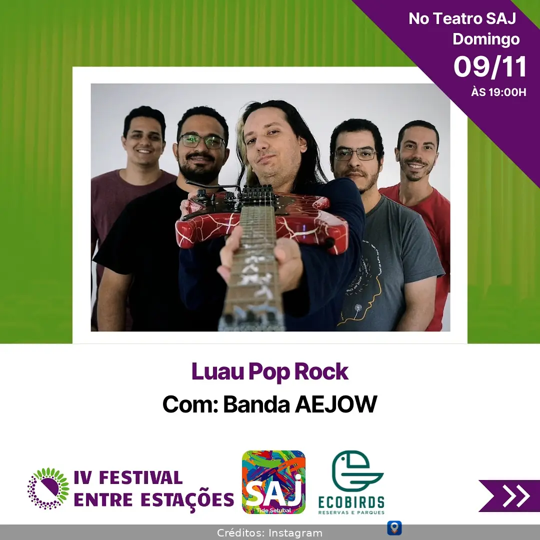 No domingo, 09/11, o Teatro SAJ vai vibrar com o som contagiante da Banda AEJOW, trazendo o melhor do Pop Rock para encerrar o IV Festival Entre Estações em grande estilo! 🎶🤘
