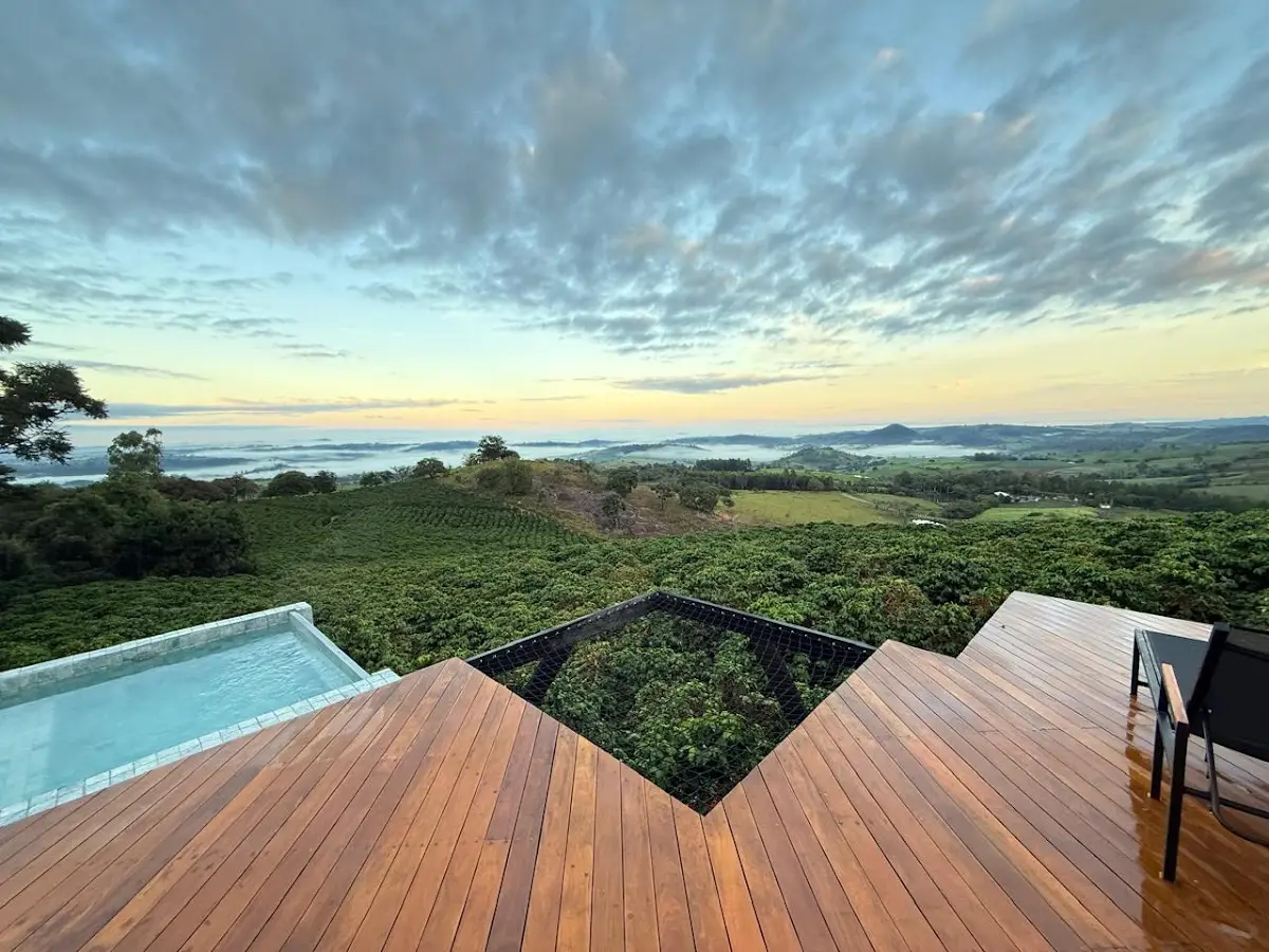 O Lodge & Coffee apresenta um novo conceito de hospedagem de luxo no topo da Serra da Paulista, em São João da Boa Vista. Esta cabana exclusiva de 100m² para casais oferece uma imersão total em um autêntico cafezal, combinando tecnologia de ponta, piscina aquecida e o ar puro das montanhas. É o refúgio perfeito para quem busca sofisticação, silêncio e a verdadeira essência do campo a poucas horas da capital.