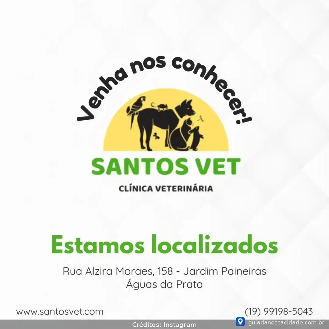 Santos Vet - Clínica Veterinária é a escolha ideal para quem busca cuidados excepcionais para seus pets em São João da Boa Vista. Nossa clínica oferece um ambiente acolhedor e moderno, com profissionais altamente qualificados prontos para atender às necessidades dos seus animais de estimação. Por que escolher a Santos Vet? Porque aqui, seu pet é tratado com carinho e respeito, garantindo bem-estar e saúde. Venha nos visitar e descubra como podemos cuidar do seu amigo de quatro patas com dedicação e amor!